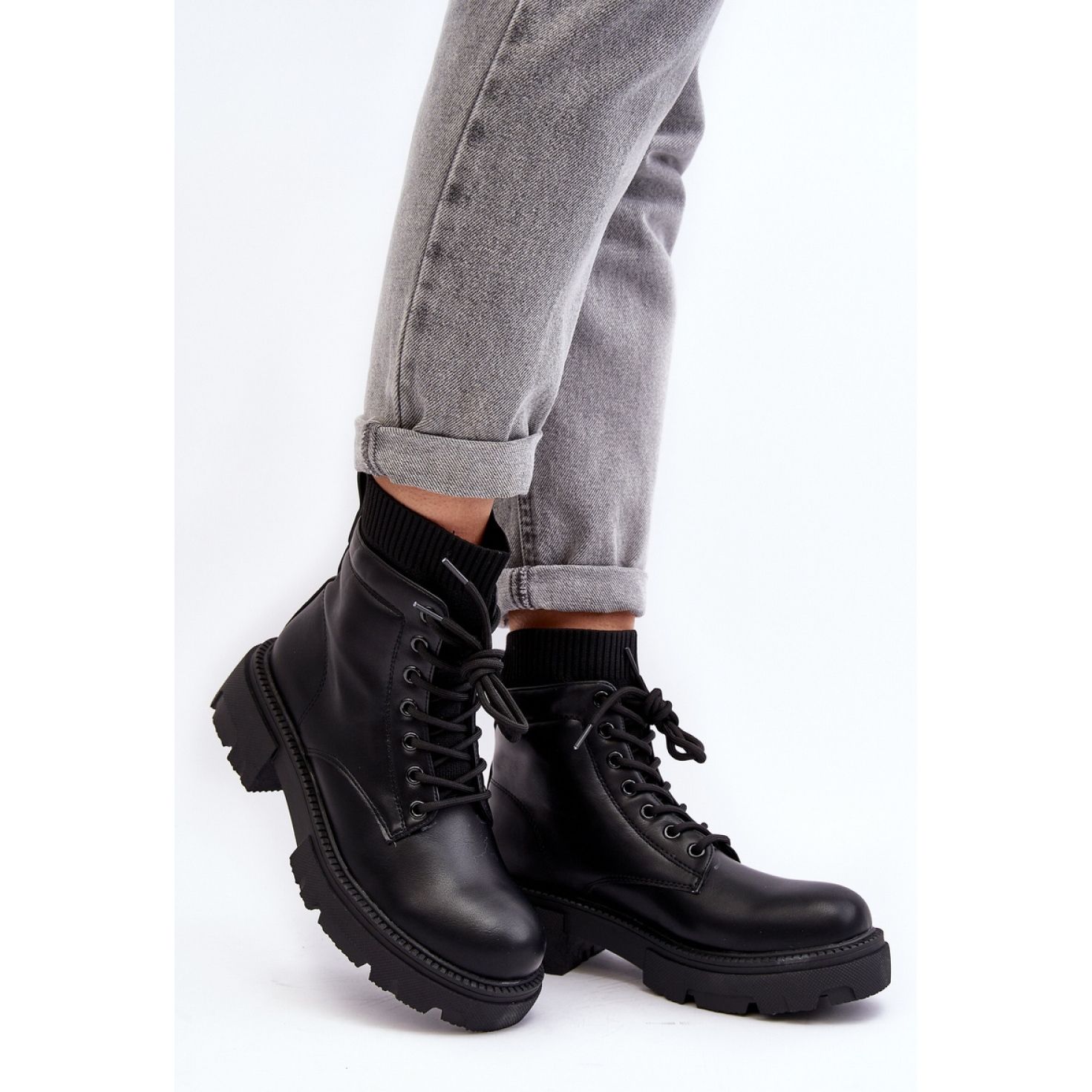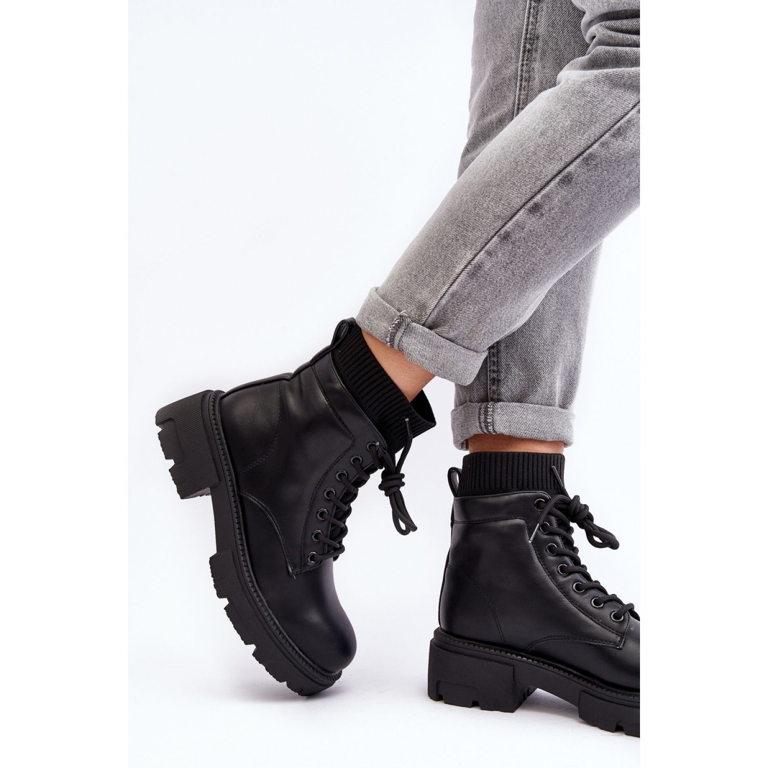 I trapper sono incorporati con un tallone solido e piatto alto 5 cm e una piattaforma di 3 cm, che garantisce stabilità e comfort in tutte le condizioni. Con una tomaia che raggiunge 15 cm, questo modello protegge perfettamente le caviglie e il taglio inserito con l'allacciatura classica nella parte anteriore dà loro il carattere. Le dita dei piedi arrotondate e il tallone irrigidito sottolineano non solo l'aspetto alla moda, ma anche il comfort di indossare.