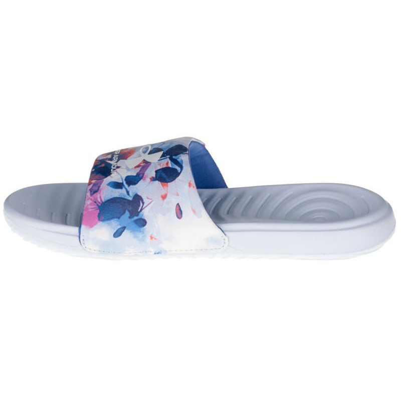 Le infradito Under Armour W Ansa Graphic W 3024436-400 in bianco e blu sono un'ottima scelta per le donne attive che vogliono combinare il comfort con un look alla moda. Queste eleganti infradito da donna sono caratterizzate da schiuma EVA di alta qualità, che garantisce leggerezza e comfort da indossare. La morbida schiuma che rifinisce il cinturino all'interno fa sì che le infradito si adattino perfettamente al piede senza causare abrasioni o fastidio.
