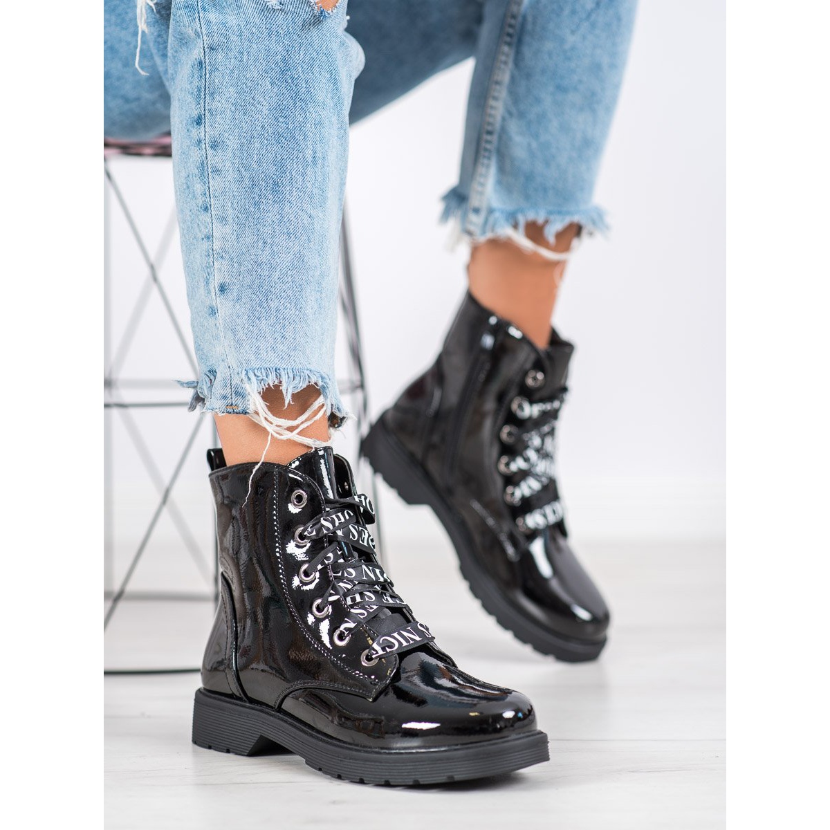 Scopri stile e comfort senza eguali con le madie laccate VINCEZA nel classico colore nero. Questi stivali bovver alla moda creati pensando alle donne sono la scelta perfetta per tutti i giorni, soprattutto nella stagione autunno/inverno. Grazie all'elegante finitura laccata ti distinguerai tra la folla, unendo stile casual e rock.