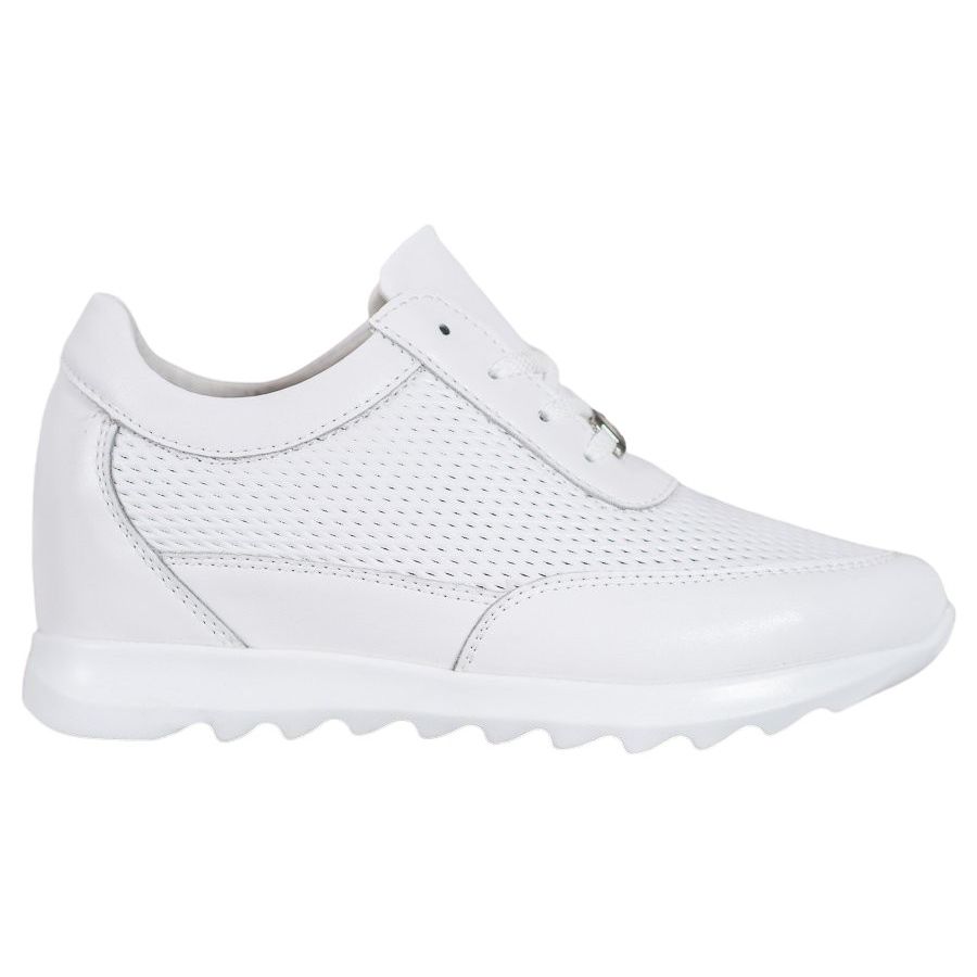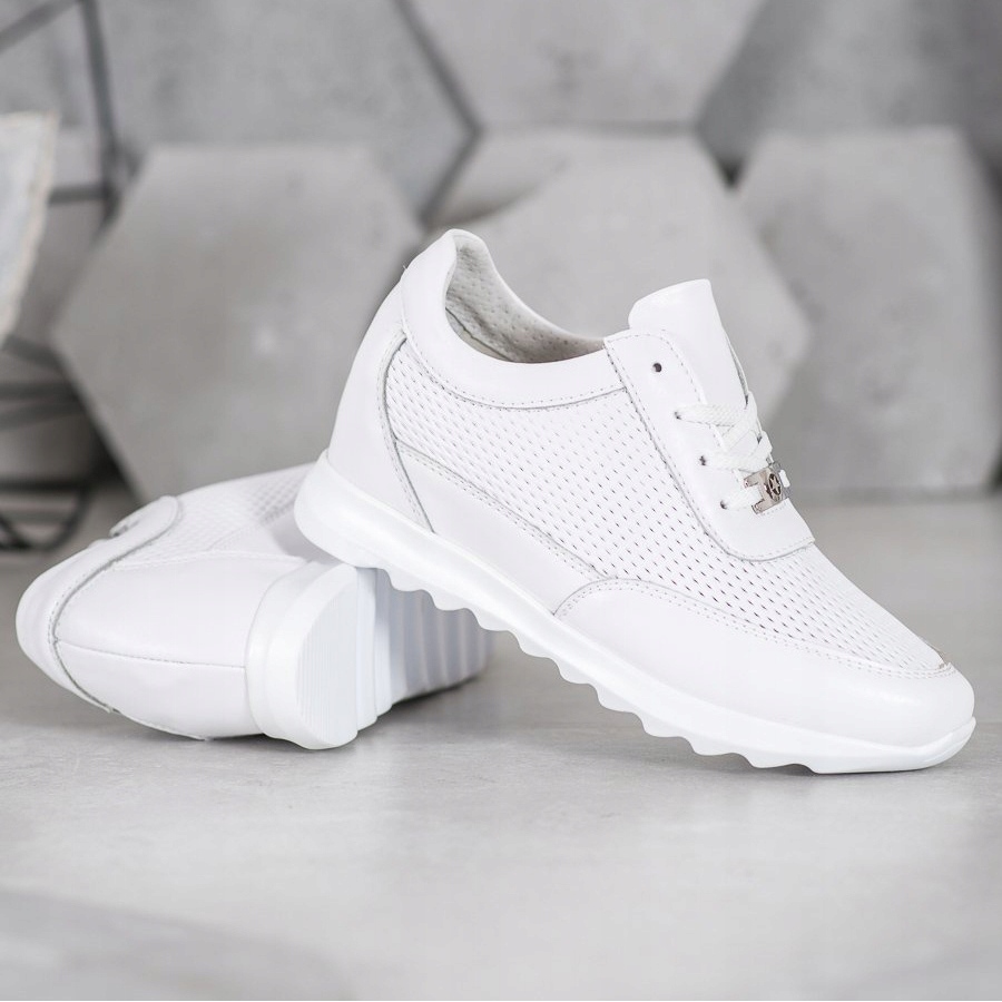 Le sneakers Vinceza si distinguono per la zeppa nascosta alta 5 cm, grazie alla quale guadagni ulteriori centimetri di altezza godendo della comodità. Il loro colore bianco universale si sposa perfettamente con i jeans, ma anche con una gonna elegante, che li rende un'aggiunta versatile a qualsiasi guardaroba.