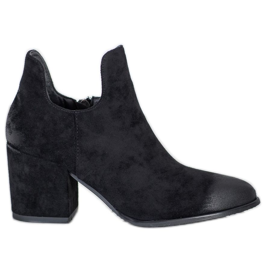 Riscopri l'eleganza e la moda con gli stivaletti bassi VINCEZA nel classico colore nero! Queste scarpe eleganti realizzate in pelle ecologica scamosciata metteranno in risalto perfettamente lo stile di ogni donna, indipendentemente dall'occasione. Particolarmente degno di nota è il sottile palo alto 7 cm, che aggiunge non solo gusto, ma anche praticità, rendendo ogni passo sicuro e confortevole.