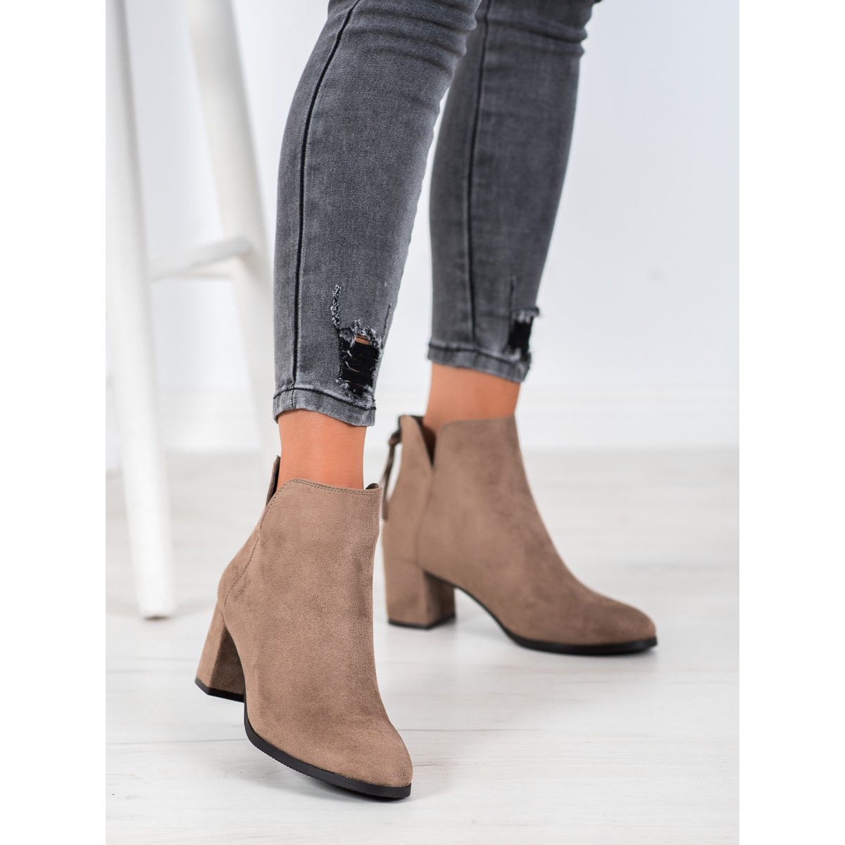 Chiusi con cerniera, questi stivaletti sono estremamente facili da indossare e da togliere. Un morbido contrafforte integrato e una suola in plastica sintetica e liscia garantiscono comfort e stabilità durante la camminata. L'altezza del tacco di 6 cm rende le scarpe comode per l'uso quotidiano e allo stesso tempo aggiunge eleganza a qualsiasi styling.
