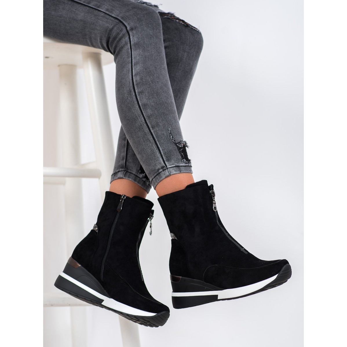 L'altezza del tacco di 6 cm fa sì che gli stivali aggiungano qualche centimetro di altezza, senza sacrificare la comodità, grazie al design con zeppa. La cerniera decorativa è un elemento decorativo impressionante che distingue queste scarpe dalle altre.